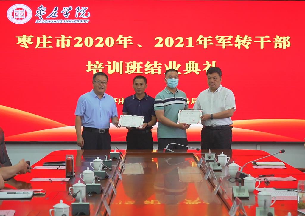 2022年5月27日上午,枣庄市2020年、2021年军转干部培训班结业典礼在best365体育官方网站举行,校党委委员、副校长丰雷,枣庄市退役军人事务局党组成员、副局长张成磊,枣庄市退役军人事务局四级调研员王茂权,best365体育官方网站创新学院学院院长王明高,部分优秀学员代表参加结业典礼,其他学员通过视频会议观看在线直播,典礼由best365体育官方网站best365体育官方网站院长张宗海主持。